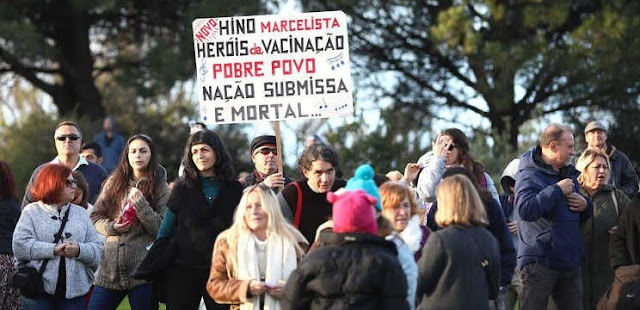 Não entendo...Vacinados e não vacinados acreditam mesmo que esta corja de politicos corruptos maçónicos/satanistas vão desistir apenas porque de vez em quando param um pouco com o seu plano maligno genocida de redução da população Mundial cada vez que povo se manifesta em massa? NAO! Eles esperam o povo acalmar se e voltam á carga e andam mais uns passos para a frente com o seu plano maligno. Chama se a isto vencer pelo cansaço. Eles só vão ser vencidos quando forem retirados dos seus cargos corruptos, julgados e presos num tribunal decente ou quando o povo os enforcar. Acreditam mesmo no "grande Despertar?". Como se consegue despertar alguém que está sob hipnose das tvs e já tomou vacinas vendendo a sua alma ao diabo? É que nem os especialistas sabem a resposta! E se é uma guerra espiritual acreditam mesmo que vão acordar pessoas que foram habituadas a idolatrar o Mundo invertido de Satã? Devemos também nós enquanto povo passar para o passo seguinte, só as manifestações pacificas já não chega|! Temos que confrontar cara a cara esta corja de demónios corruptos...Enquanto ainda o podemos fazer...